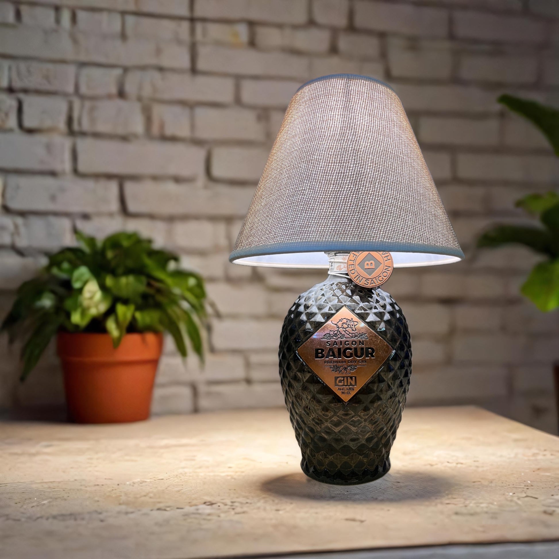 Illumina la tua casa con stile con la lampada Saigon Baigur a forma di pigna, con tappo in rame marcato con il logo del gin. Il paralume color sabbia aggiunge un tocco di eleganza alla tua decorazione. Aggiungi un elemento unico e divertente alla tua illuminazione con questa bellissima lampada.